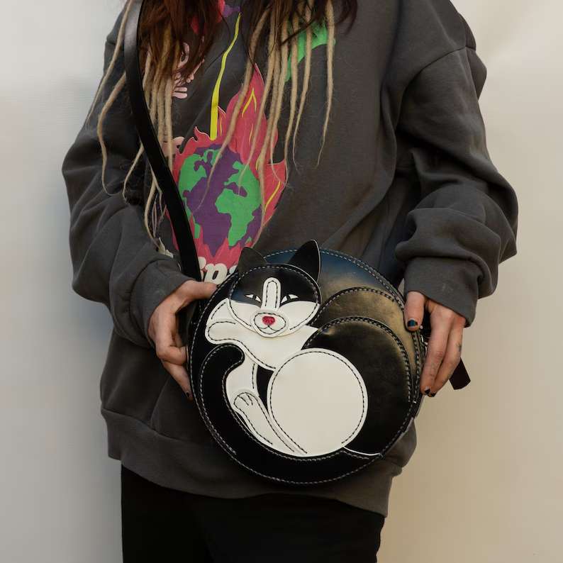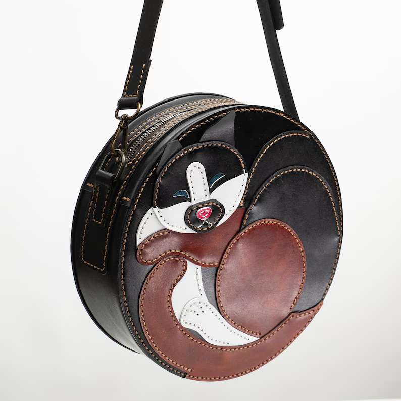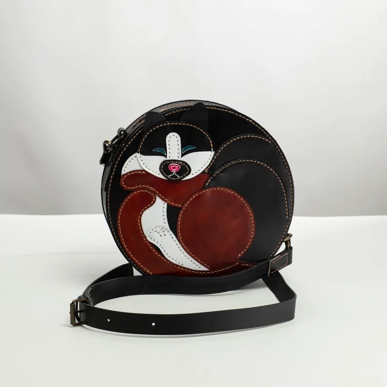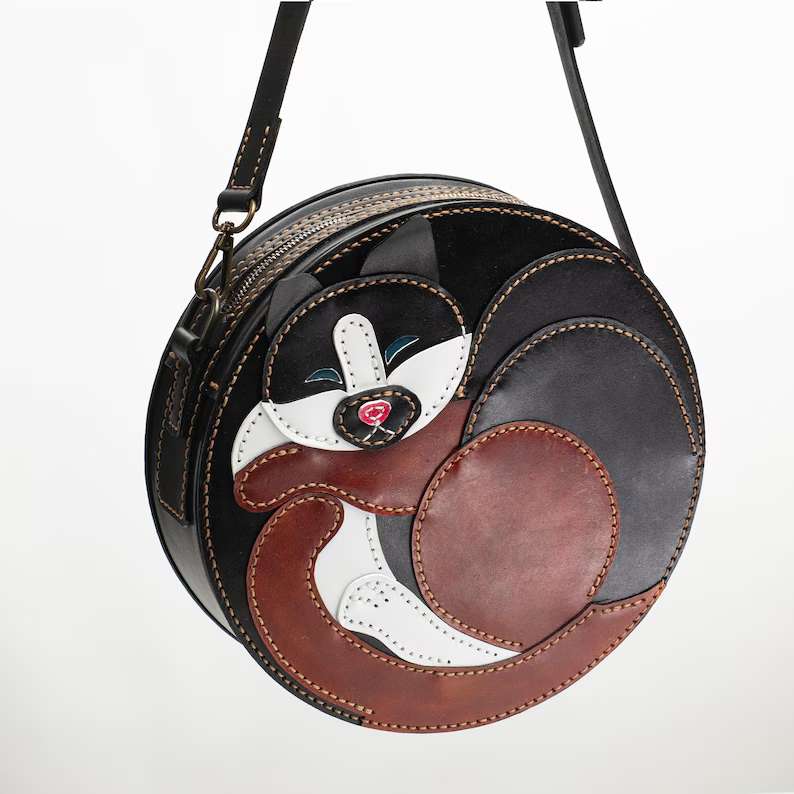 皮革猫咪圆包图纸制作教程